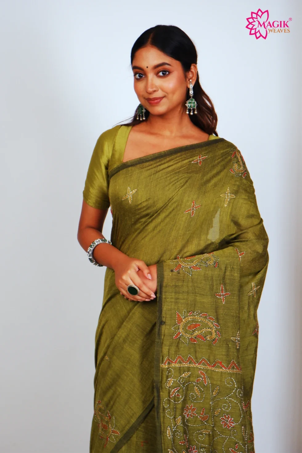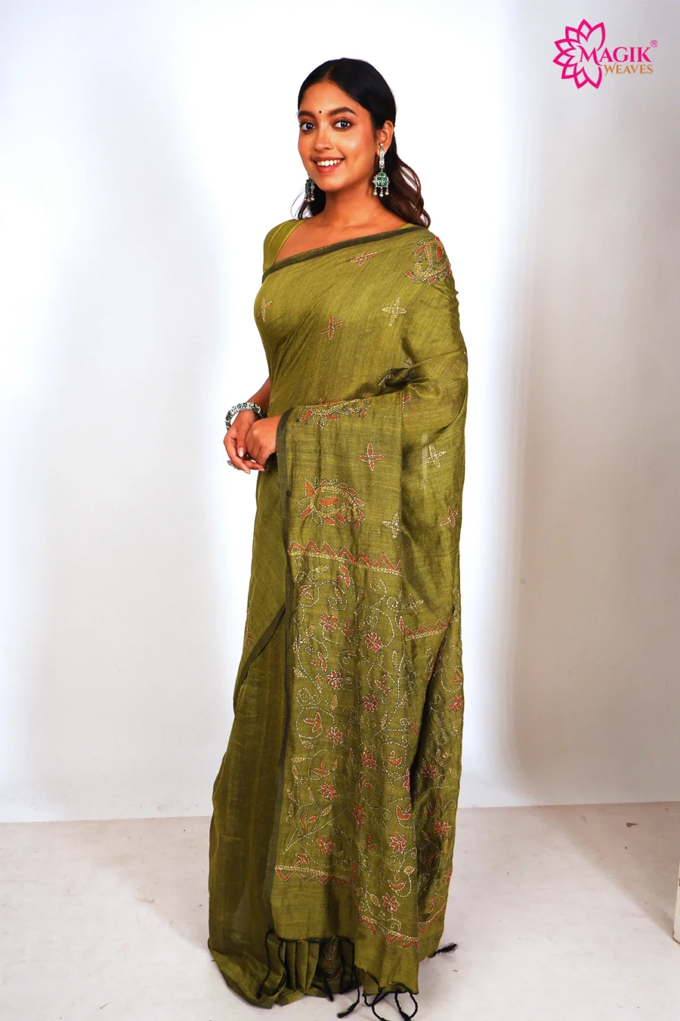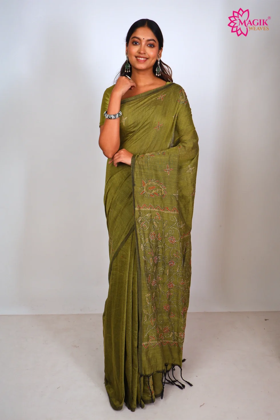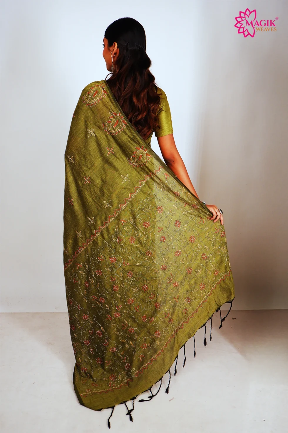 Be the first to review “Cotton Kantha Stitch Saree in Olive Green”