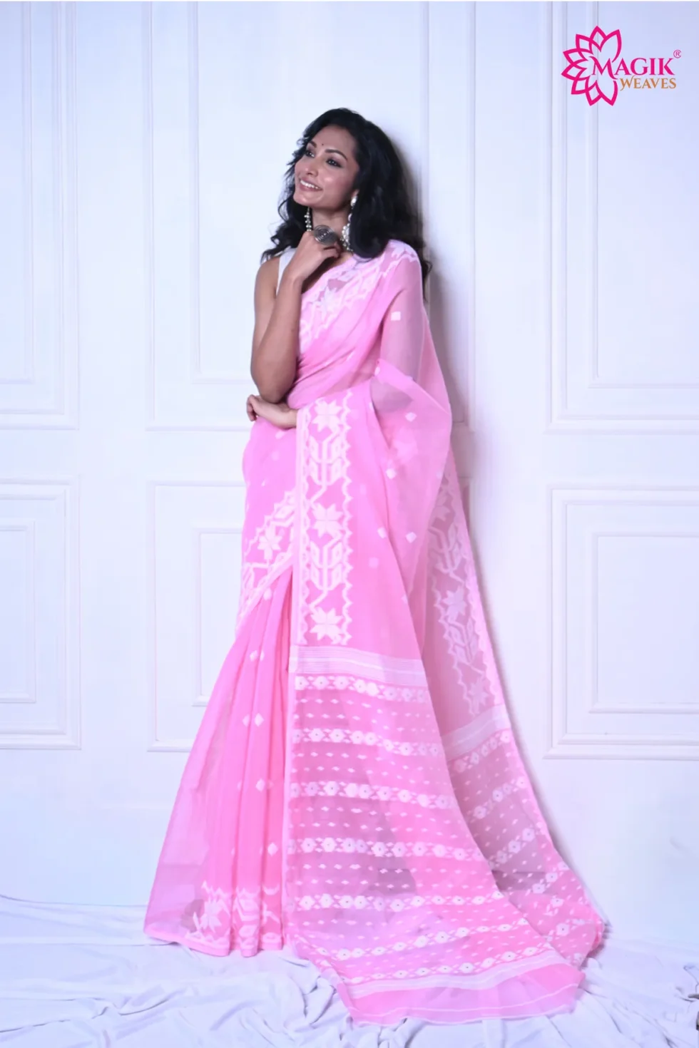 Graceful Pink Cotton Jamdani Saree